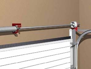 На пружину с двух сторон накручиваются окончания пружин. С одной стороны окончание пружин закрепляется на валу ворот, с другой стороны окончание пружины крепится через специальный кронштейн (внутренний опорный кронштейн) к стене. Таким образом, один край пружины всегда остается неподвижным, а другой вращается вместе с валом.